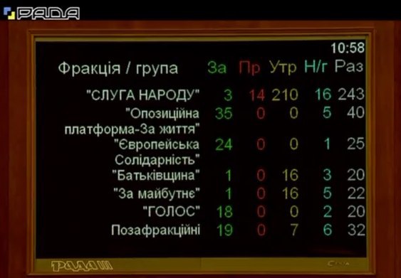 За відповідне рішення проголосував лише 101 нардеп, 249 - нардепів утрималися, 14 - проголосували "проти".