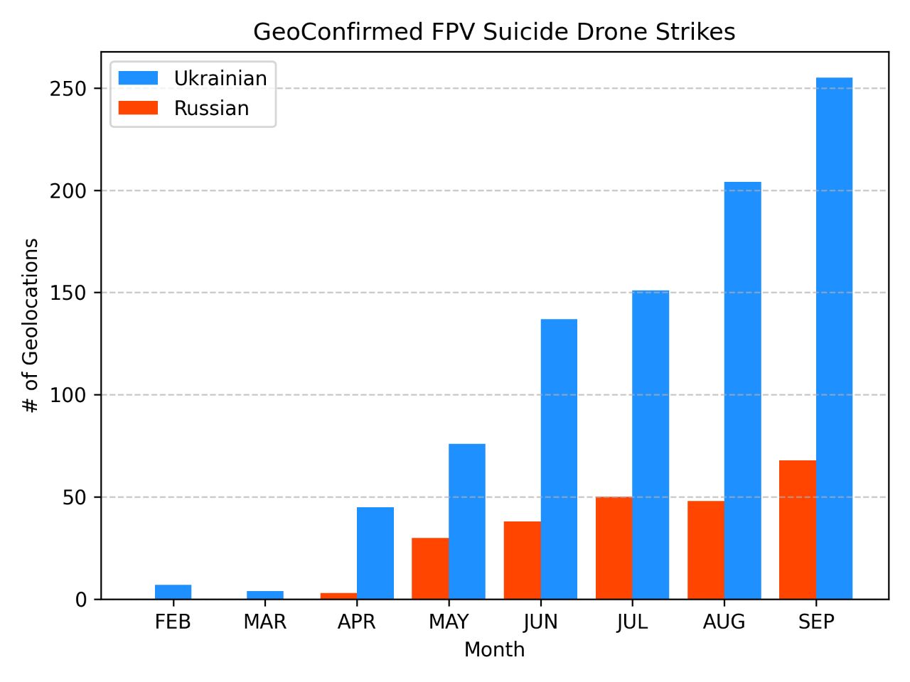 Аналітики OSINT-проєкту GeoConfirmed наводять відповідний графік.