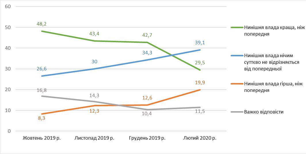 3. Уряду у вересні 2019 р. довіряли 57% респондентів, не довіряли - 22%, у лютому 2020 року - відповідно 28% і 64,5%.