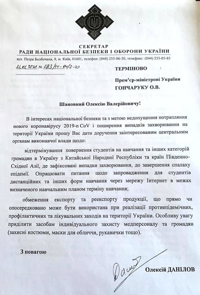Секретар РНБО Данілов на початку року ДВІЧІ просив уряд заборонити експорт масок. Але уряд ігнорував цю інформацію. В результаті Митна служба оформляла аж до 11 березня вивезення масок з України - приватні компанії вивезли 980 тонн масок.