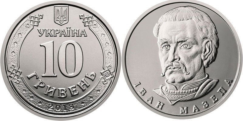 На реверсі монети номіналом 10 гривень зображено портрет українського гетьмана Івана Мазепи; на аверсі в центрі в обрамленні давньоруського орнаменту розміщено номінал монети.