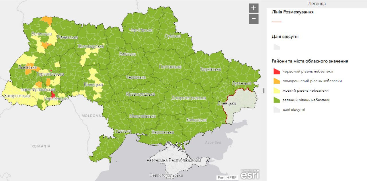 🌕 До жовтої зони потрапили 40 регіонів.