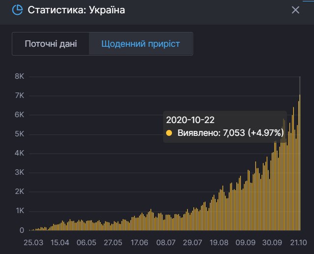 😷 В Україні за добу виявлено рекордні 7053 нові випадки COVID-19
