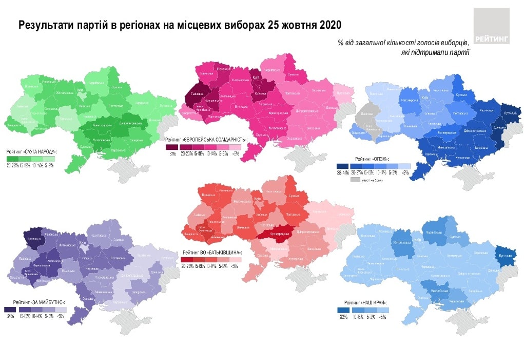 Сукупна підтримка п'яти парламентських партій на місцевих виборах 25 жовтня становила 51% (на виборах до Верховної Ради 2019 року вони отримали 78%). Аналіз результатів місцевих виборів продемонстрував, що активність виборців у західних регіонах була вищою, аніж у південно-східних.