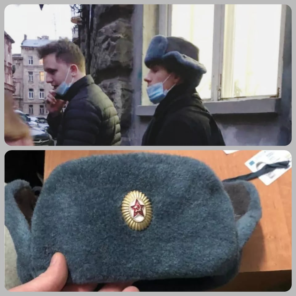 Вчора в одному з кафе на вулиці Валовій у Львові помітили 19-річного жителя Києва, у якого на шапці була присутня комуністична символіка. Правоохоронці вилучили шапку з кокардою, на якій зображено серп і молот у червоній зірці.