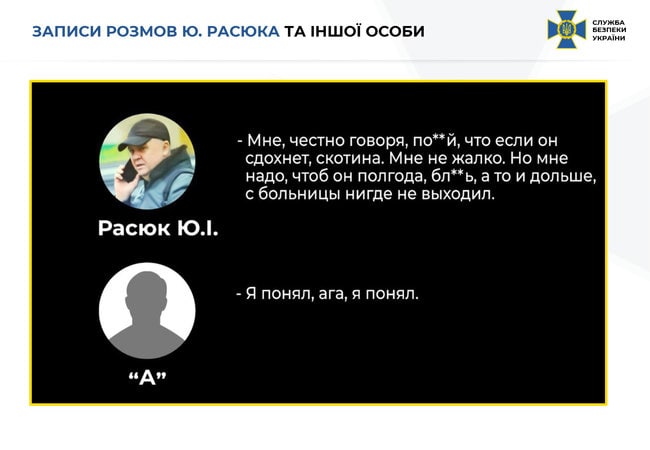 СБУ опублікувала фото- і відеоматеріали, та аудіозаписи розмов, на яких заступник голови СБУ Нескоромний і співробітник Антитерористичного центру при СБУ Расюк обговорюють підготовку вбивства начальника ГУ внутрішньої безпеки СБУ Наумова.
