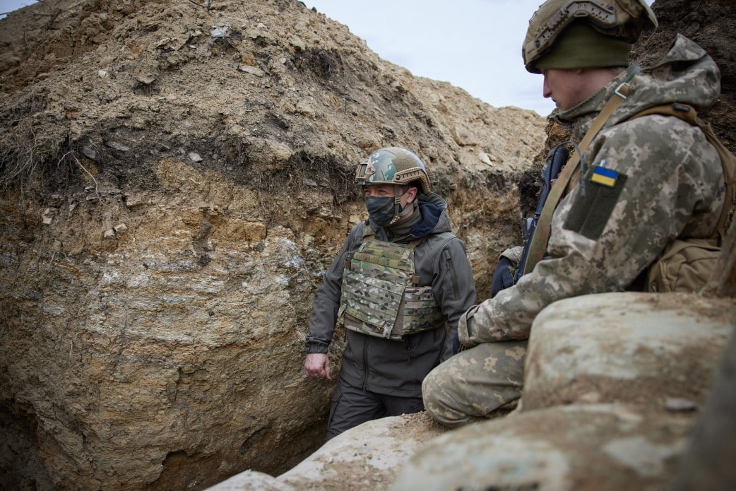 Перебуваючи з робочою поїздкою на Донбасі, президент України Володимир Зеленський відвідав позиції на передньому краї оборони, де зафіксовано найбільшу кількість порушень режиму всеосяжного та сталого припинення вогню. Глава держави поспілкувався з військовослужбовцями, які служать на бойових позиціях.