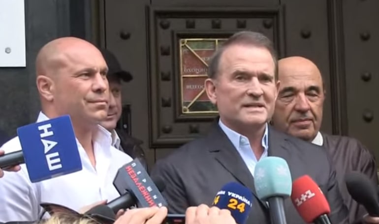 Однопартійці глави політради ОПЗЖ Віктора Медведчука стверджують, що через декілька годин Печерський суд Києва обиратиме запобіжний захід їх босу за справою про державну зраду і порушення правил ведення війни.