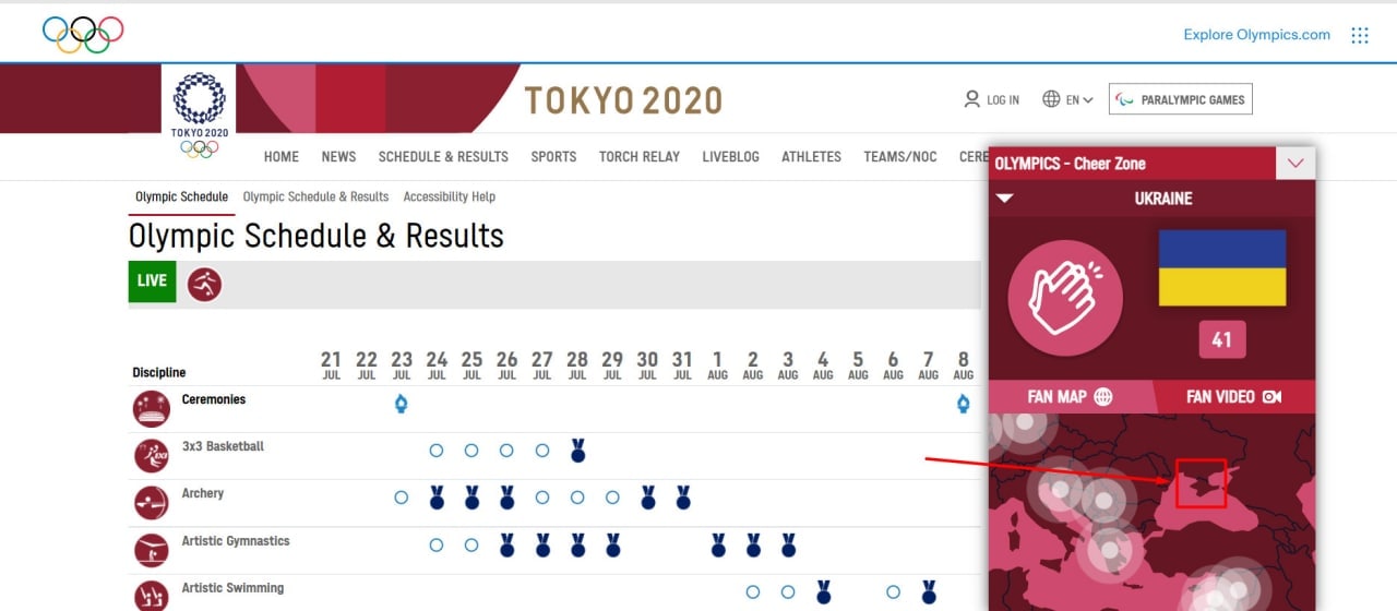 Тепер у віконці "OLYMPICS - Cheer zone" карта України зображена коректно. Крим більше не відділений від України кордоном.