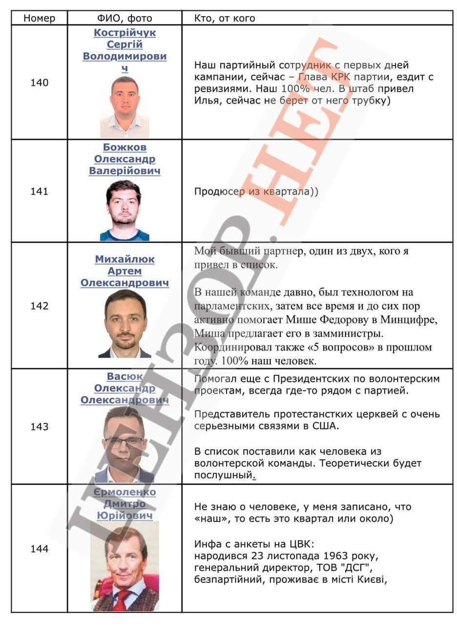 🔸 Номер 140 – Сергій Кострійчук. Судячи з коментаря, його включив до списку «СН» Ілля Павлюк, один з керівників виборчого штабу партії, якого в медіа називають контрабандистом і тіньовим решалою, близьким особисто до Зеленського. Офіс Павлюка знаходиться біля самих воріт Офісу президента, і Павлюк туди ходить як на роботу. Нібито «не бере трубку від Іллі» Кострійчук. Ну раз не бере, значить вже надійний, а хто його і за скільки вставив в список - не важливо.