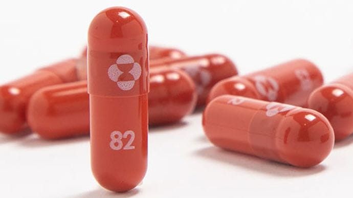 "Молнупіравір" - експериментальний противірусний препарат, розроблений для лікування грипу. Клінічні випробування довели, що він приблизно вдвічі знижує ризик госпіталізації та смерті внаслідок коронавірусу.