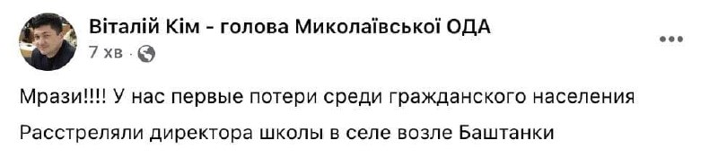⚡️На Миколаївщині російські окупанти розстріляли директора школи.