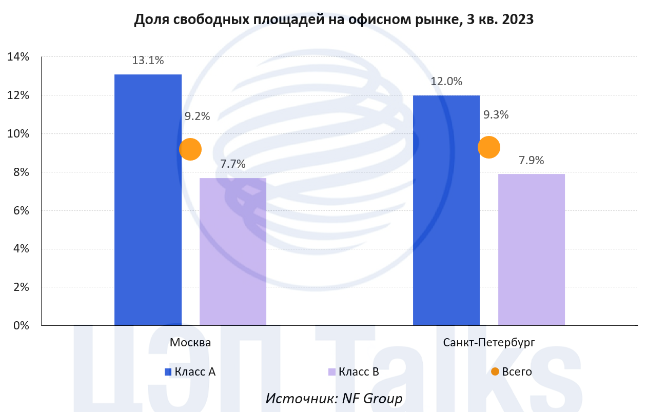 ▪️ вакантность в классе А существенно выше, чем в классе В;