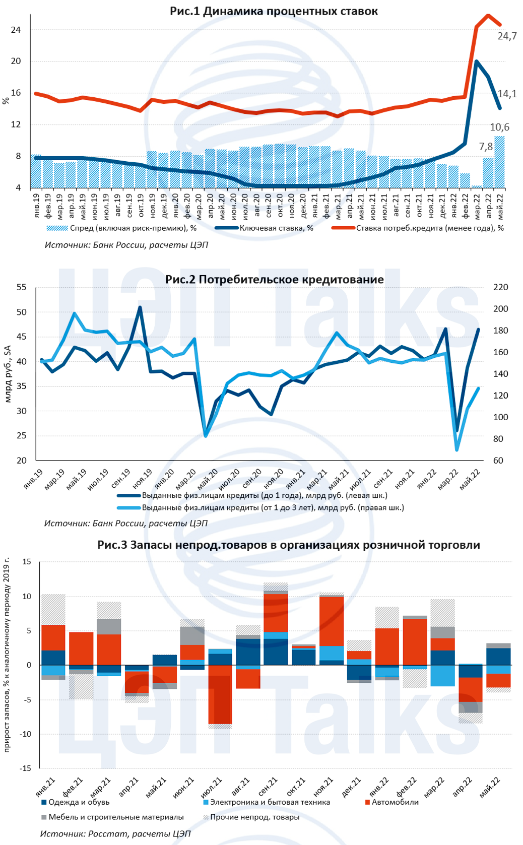 ·Запасы непродовольственных товаров в организациях розничной торговли (рис.3) остаются на пониженном уровне (в основном в автомобилях и электронике). Их ограниченное предложение – один из проинфляционных рисков при росте потребительского кредитования.