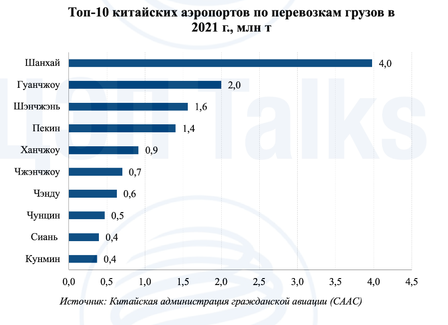 Плановая цель по перевозке грузов через аэропорт Эчжоу – 2,45 млн т/год к 2025 г., около трети от всего объема перевозок грузов авиатранспортом в Китае в 2021 г. Ожидается, что к 2030 г. перевозки грузов и почты через Эчжоу Хуаху вырастут до 3,3 млн т/год. В случае выполнения плана аэропорт может обойти по этому показателю Гуанчжоу (2 млн т/год в 2021 г.) и Шэньчжень (1,6 млн т), заняв второе место в Китае после Шанхая (3,9 млн т/год). Для сравнения: трафик грузов и почты через аэропорты РФ в 2021 г. практически достиг 1 млн т.