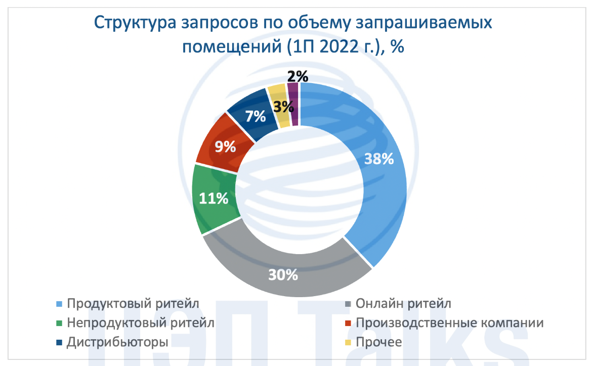 Среди основных арендаторов, проявляющих интерес к складам, остаются торговые компании, при этом преимущественно продовольственного сегмента. Сохраняется высокая доля отрасли e-commerce, резко выросшей в годы пандемии.