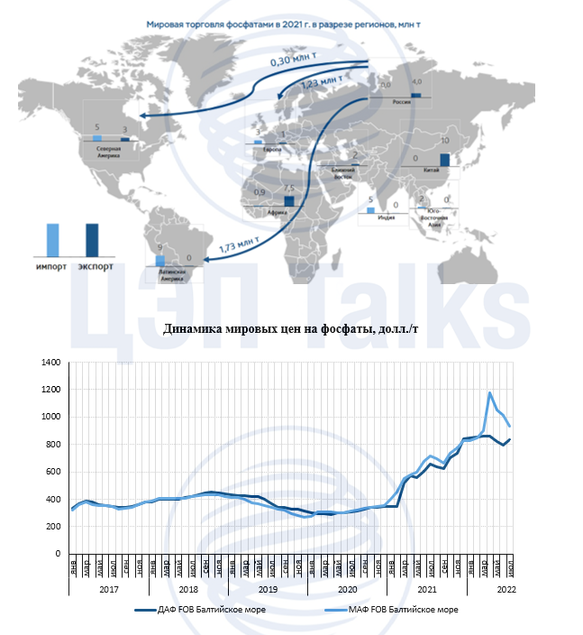 В июле стало известно, что Правительство Китая ввело ограничения в виде квот на экспорт фосфорсодержащих удобрений. Выделена квота в 3 млн т фосфорных удобрений (2 млн т — ДАФ, а остальное — МАФ, NP, TSP) для отгрузок на экспорт в 3 и 4 кварталах 2022 года.