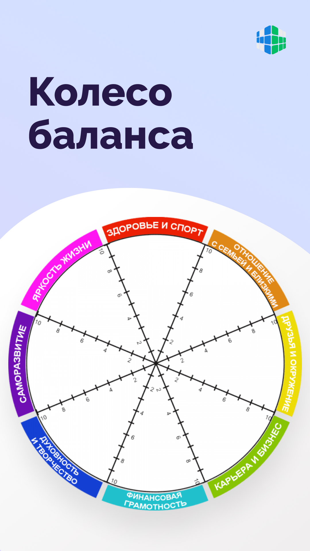 1️⃣ Заполните сектора этого круга по степени удовлетворенности каждой сферой своей жизни.