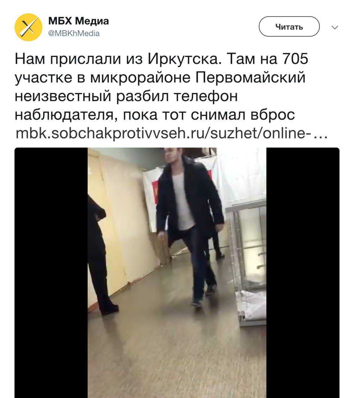 ««Общественный штаб зафиксировал вброс на участке №1982. Ранее поступила жалоба на то, что на данном участке с разрывом в 16 минут дважды проголосовал один и тот же человек. На место направлена мобильная группа Общественного штаба по наблюдению за выборами, в которую вошли Уполномоченный по правам человека в городе Москве Татьяна Потяева и представитель партии Роста Максим Бычков. Мобильная группа выяснит все обстоятельства вброса».