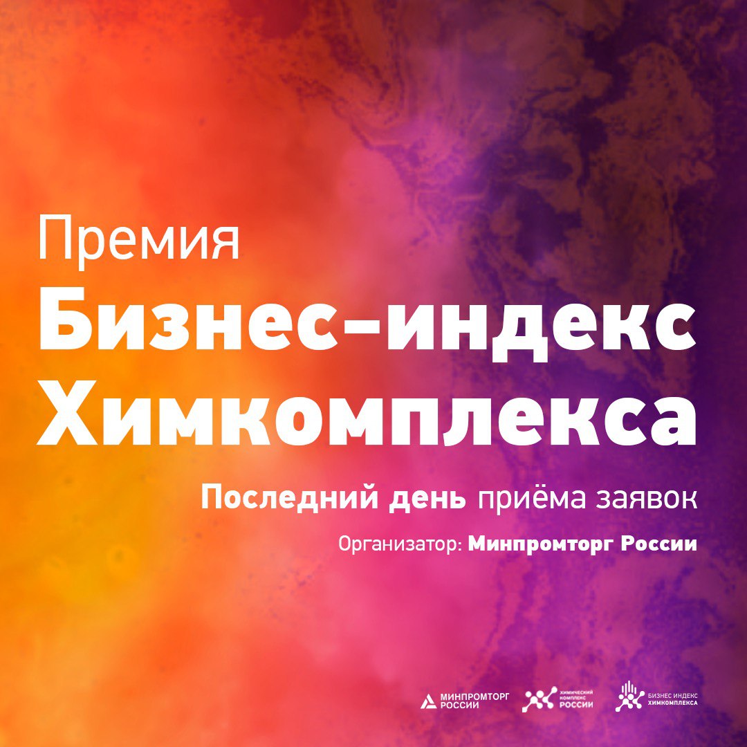 Сегодня последний день приёма заявок на отраслевую премию «Бизнес-индекс Химкомплекса», организованную Минпромторгом России. К участию приглашаются предприятия химической промышленности, научно-технические организации и высшие учебные заведения.