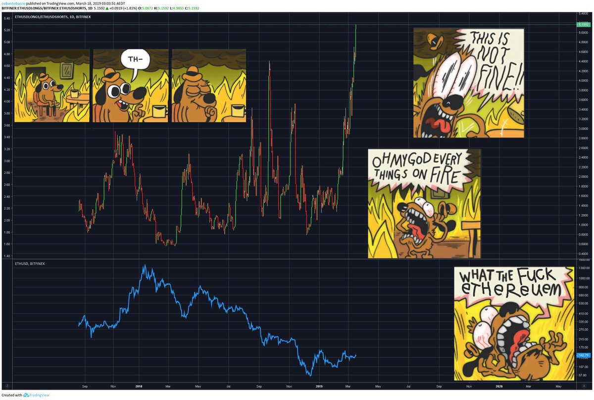 Обычно смотреть за соотношением лонг/шорт позиций не имеет смысла, но то, что происходит с эфиром сейчас вообще нездорово