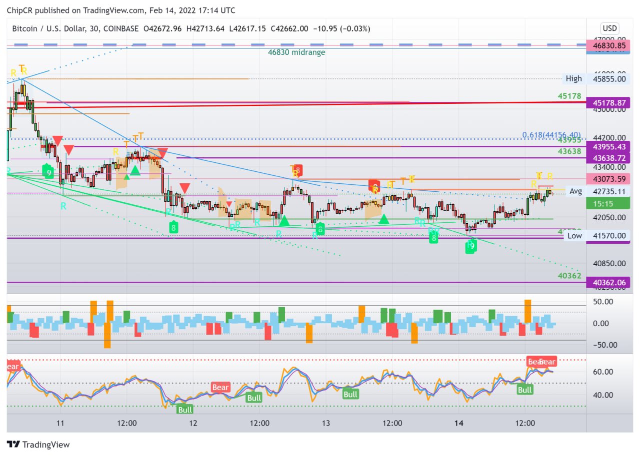 В конце прошлой недели было объявлено о внеочередном заседании ФРС США. Плановое заседание было назначено на март, но товарищи решили собраться пораньше. Вполне возможно, чтобы повысить ставку сейчас, пока официальная инфляция, которая находится на самых высоких за 40 лет отметках, не превысила планку в 8%. Итоги заседания ожидаются в 22 часа по Москве, вот тогда мы можем увидеть фейерверки.