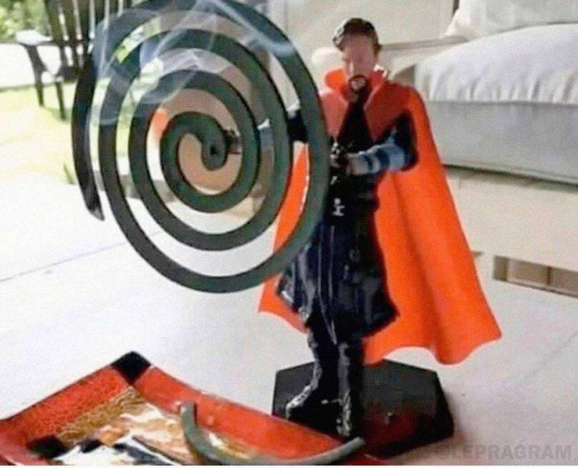 В рубрике #киномерчага сегодня вот эта находка с просторов интернета: я не знаю, это так задумано, или владелец догадался, но выглядит этот антимоскитный Доктор Стрэндж гениально🔥