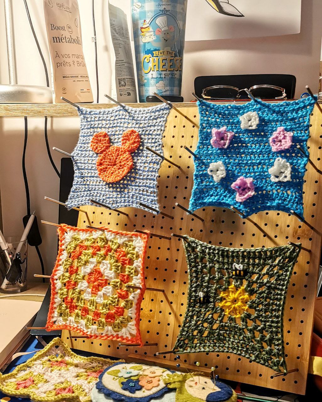 Лонг стори шорт: я вяжу плед в стиле Disney! Схемы и материалы приходят по почте из расчета один квадрат в неделю, так что через два года должна закончить (вроде, там и подушка ещё). Крючок я с роду в руках не держала, — если не считать времени, когда я носила и подплетала дреды, — так что процесс удивительно новый и сложный для меня (чувствую, как нейронные связи шевелятся в башке). А ещё гипнотический: кроме как считать петли особо ничего больше делать не получается, так что даже сериальчики параллельно не посмотришь (эх). Завожу свой патефон и медитирую.