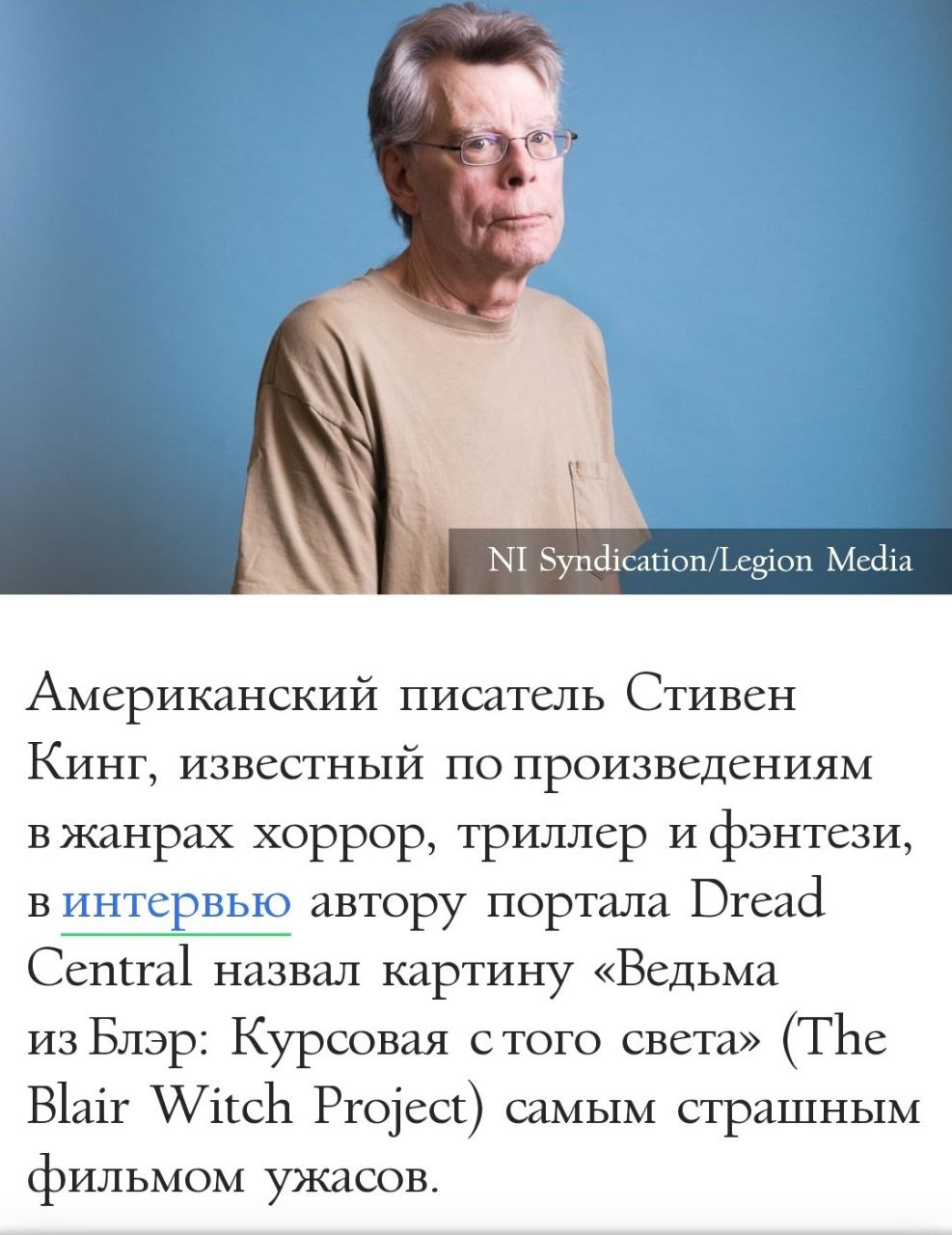 Очень круто знать, что мой любимый хоррор так высоко оценён самим Королём ужасов #СтивенКинг 🖤 Смотрели?!