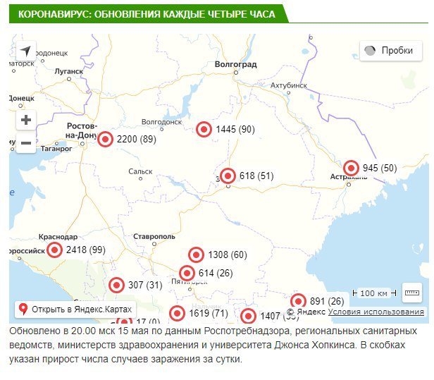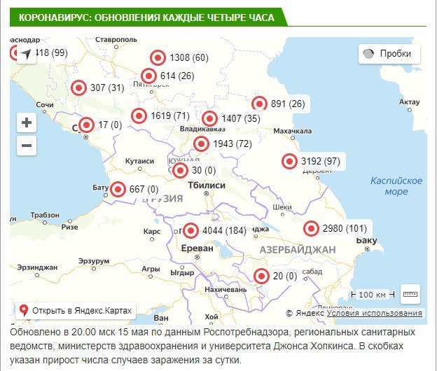 Напомним, что карта Юга России и Закавказья по состоянию с коронавирусом обновляется на Кавказском узле по нескольку раз в день, количество смертей больных коронавирусом по региону или закавказской стране можно узнать, нажав на цифры заболевших.