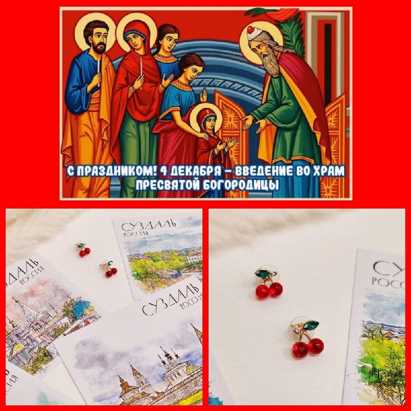 🍒 Набор открыток из Суздаля и серёжки-вишенки из Владимира (с недавних пор символ города - памятник вишни).