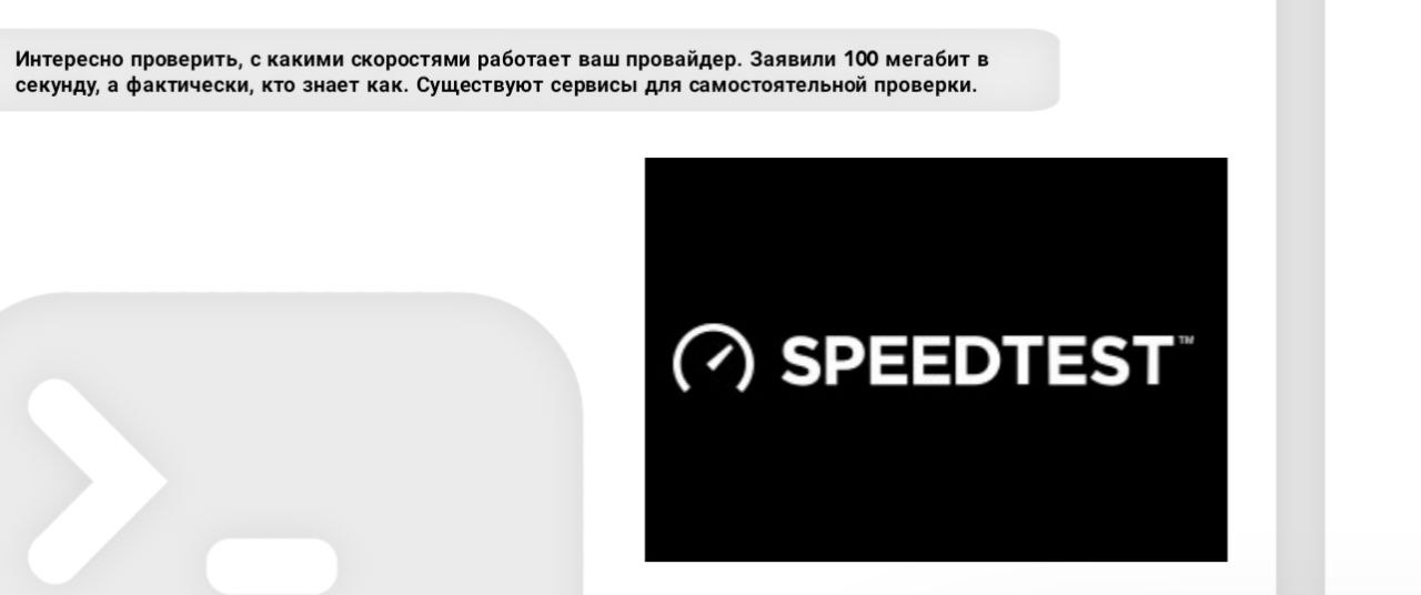 Интересно проверить, с какими скоростями работает ваш провайдер. Заявили 100 мегабит в секунду, а фактически, кто знает как. Существуют сервисы для самостоятельной проверки.
