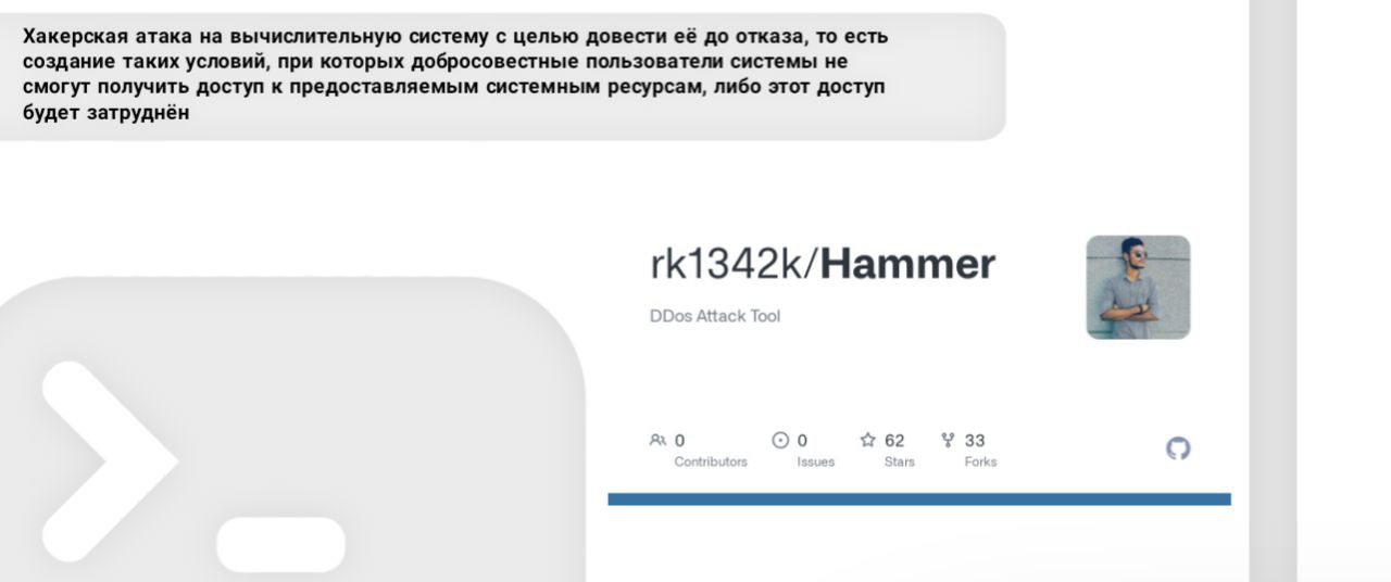 Хакерская атака на вычислительную систему с целью довести её до отказа, то есть создание таких условий, при которых добросовестные пользователи системы не смогут получить доступ к предоставляемым системным ресурсам, либо этот доступ будет затруднён.