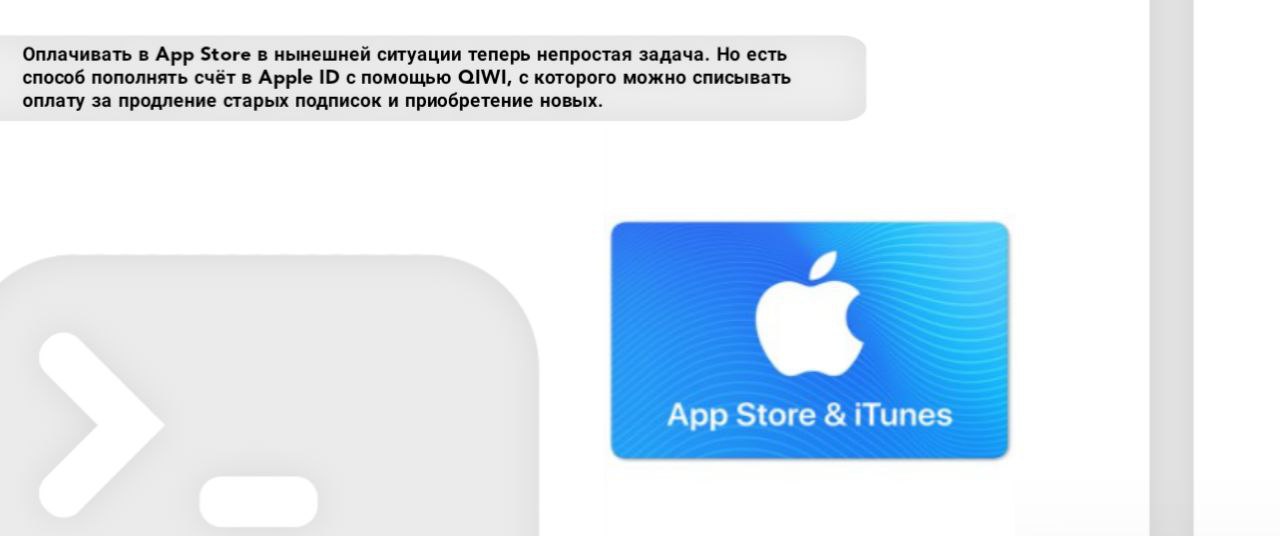 Оплачивать в App Store в нынешней ситуации теперь непростая задача. Но есть способ пополнять счёт в Apple ID с помощью QIWI, с которого можно списывать оплату за продление старых подписок и приобретение новых.