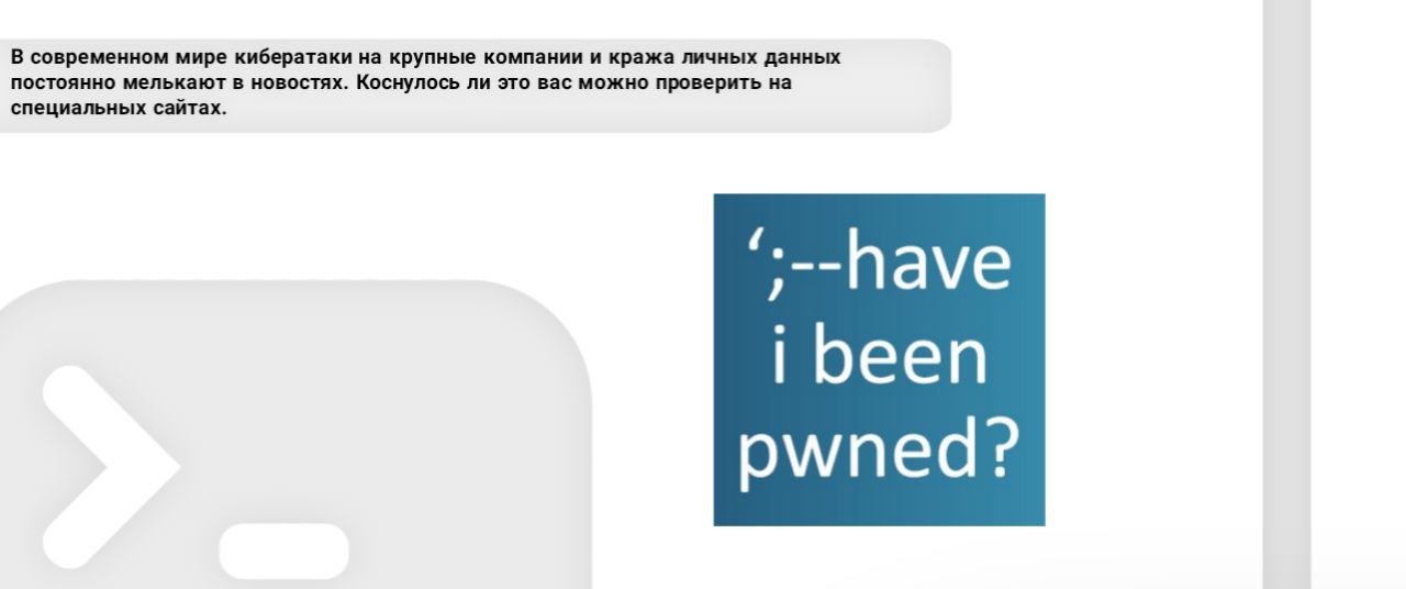 В современном мире кибератаки на крупные компании и кража личных данных постоянно мелькают в новостях. Коснулось ли это вас можно проверить на специальных сайтах.
