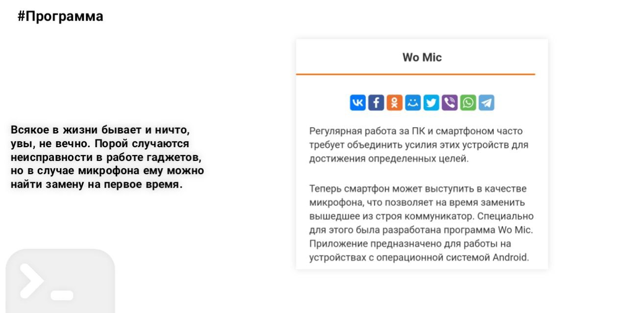 А такое приложение, как WO Mic, с удовольствием вам поможет. Приложение работает со смартфонами под операционной системой Android. Работа проходит дистанционно, а самое главное — бесплатно.