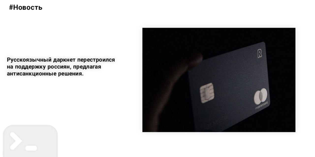 Русскоязычный даркнет перестроился на поддержку россиян, предлагая антисанкционные решения. Поставщики услуг по обналу и пробиву теперь предлагаю безымянные карты европейских банков и сервисы для работы под видом европейца.