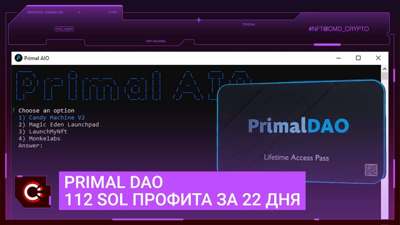 Primal DAO — альфа-группа, по коллам которой можно было сделать порядка 100 SOL за последние 3 недели. Альфа-группа, которая планирует выпустить всего 888 NF T пассов и собрала более 16 тысяч человек на своем сервере, а также больше 10 тысяч подписчиков в Twitter.