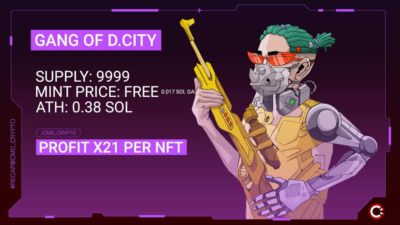 Мы заблаговременно подготовились к дропу Gang Of D.Citiy, рассказав своим мемберам как наименее затратно и наиболее быстро нафармить вайтлисты с правом минта 5 штук. С учетом откупа до того, как коллекция продалась нашими участниками было взято около 1000 NFT, что составляет порядка 10% от общего стока.