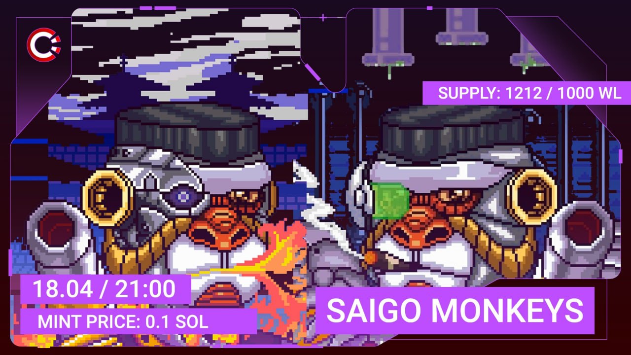 Saigo Monkeys — классический нфт-проект на солане. В соцсетях цифры небольшие, порядка 2 тысяч подписчиков, но актив есть. Согласно роадмапу, обещают сначала создать DAO, запустить токен и стейкинг для него, а затем щедро наградить холдеров различными розыгрышами. Ничего необычного.