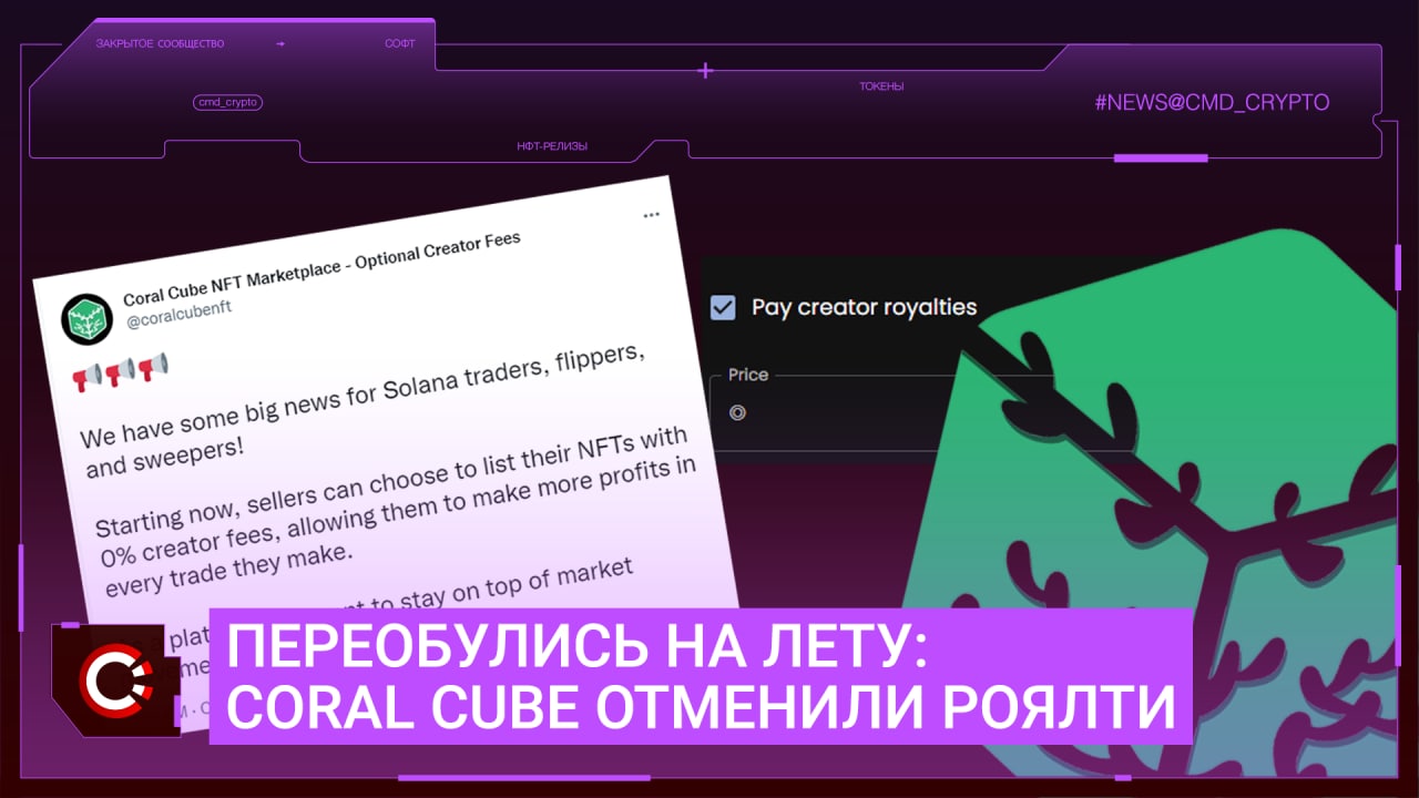 В сентябре мы рассказывали об инновационном сотрудничеством Coral Cube и Magic Eden, направленном на борьбу с роялти и вылившемся в MetaShield. Прошло две недели и на CC отменили роялти. Точнее, сделали их по желанию. Что, зачем, почему? Не понятно.