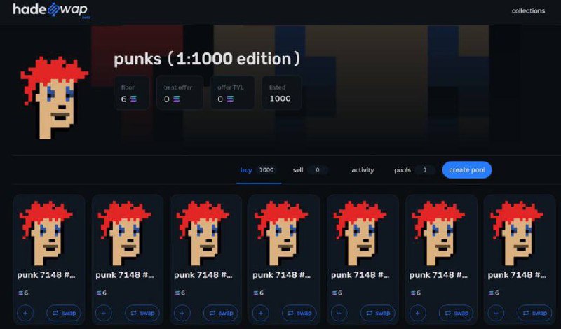 Данная акция проходит в партнёрстве с АММ Hadeswap и на данный момент на продажу выставлен всего 31 панк по стартовой цене 13.6 SOL.