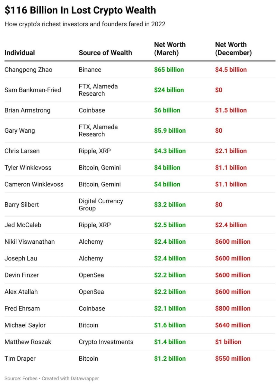В 2022 году криптомагнаты потеряли 116 миллиардов долларов, а кто-то вообще перестал быть не только магнатом, но и свободным человеком (привет, Семён).