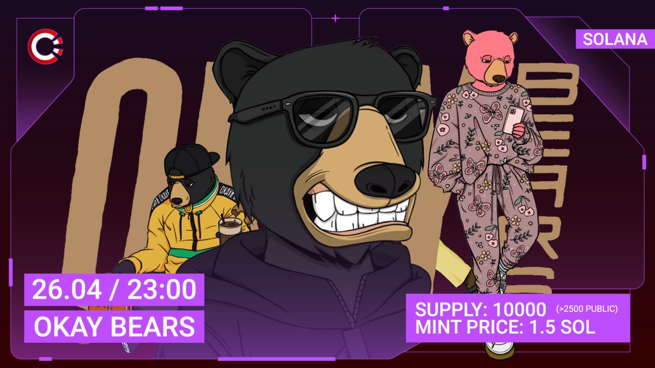Практически 100 тысяч подписчиков в твиттере, столько же в Discord — поразительные цифры для проекта на солане. Okay Bears — серьезный проект с обширной командой и грандиозными планами. Одной из целей команды является создание собственного музыкального коллектива и запись лоу-фай альбома.