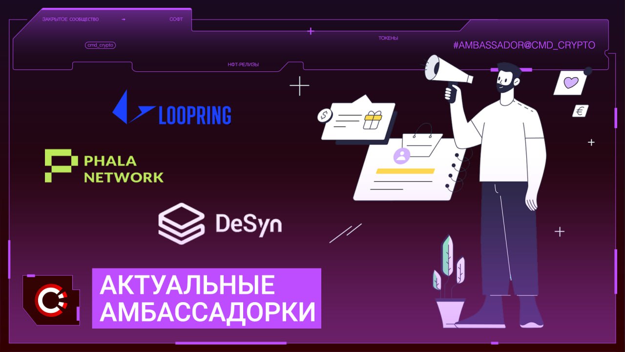 Небольшой список актуальных амбассадорских программ. Отлично подойдет тем, кто начинает с низким банкам и тем, кто работает фулл-тайм в крипте.