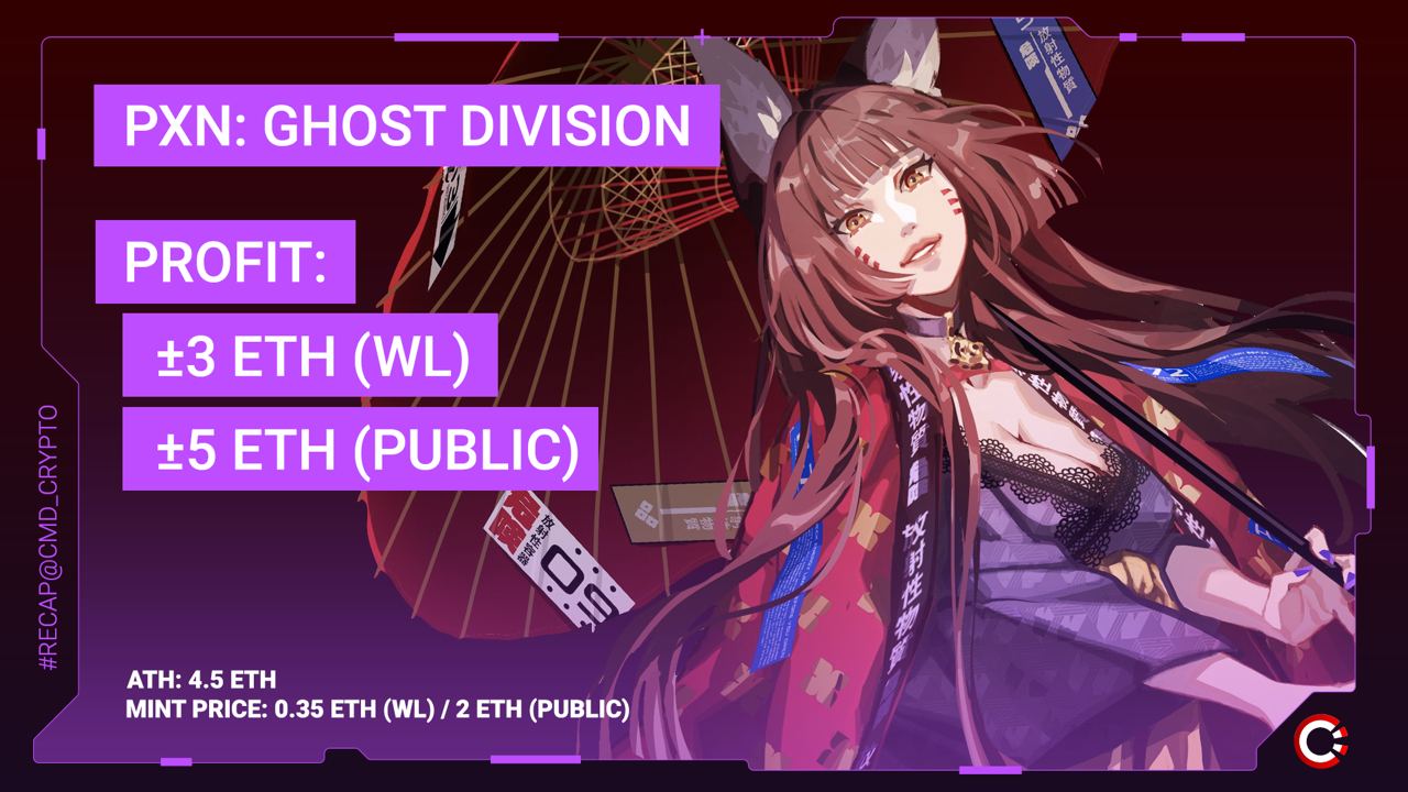 Пару дней назад прошёл минт проекта Project PXN:Ghost Division, колл на который появился в нашем дискорде еще в середине марта. Приложив минимальные усилия на ранней стадии, наши мемберы с легкостью получили вайтлист и смогли приобрести NFT по цене в 0.35 ETH.
