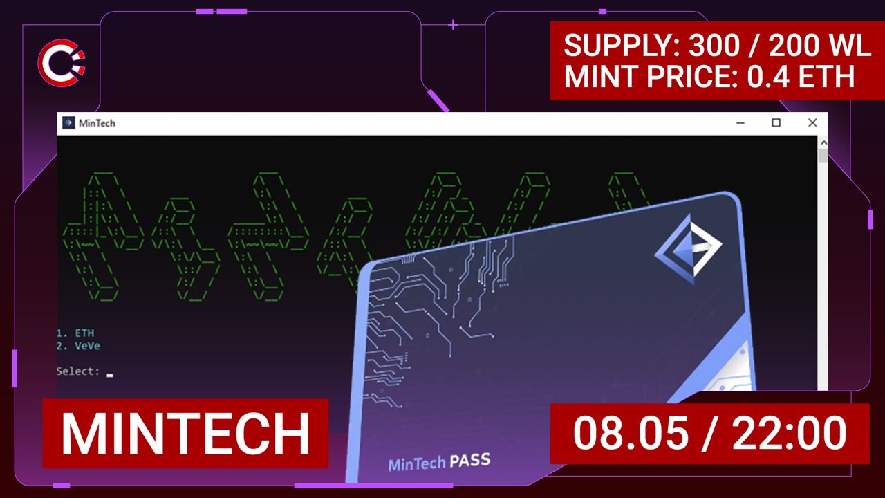 Сегодня состоится сейл NFT, дающих доступ к MinTech, CLI NFT боту, позволяющему автоматизировать процесс минта на блокчейне Ethereum. Основным преимуществом данного софта является то, что команда разработчиков выпускает апдейт под каждый дроп с защитой от ботов, тем самым, значительно увеличивая его шансы на успех.