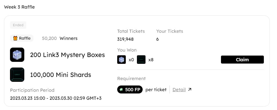 Link3 / Cyberconnect FanClub. Неделя 2 #airdrop, #nft Вчера закончился первый недельный розыгрыш в рамках FanClub от Link3 / Cyberconnect. Как мы и говорили, выиграть пару мини-шардов было более чем реально даже если вы впервые зашли в проект только после…