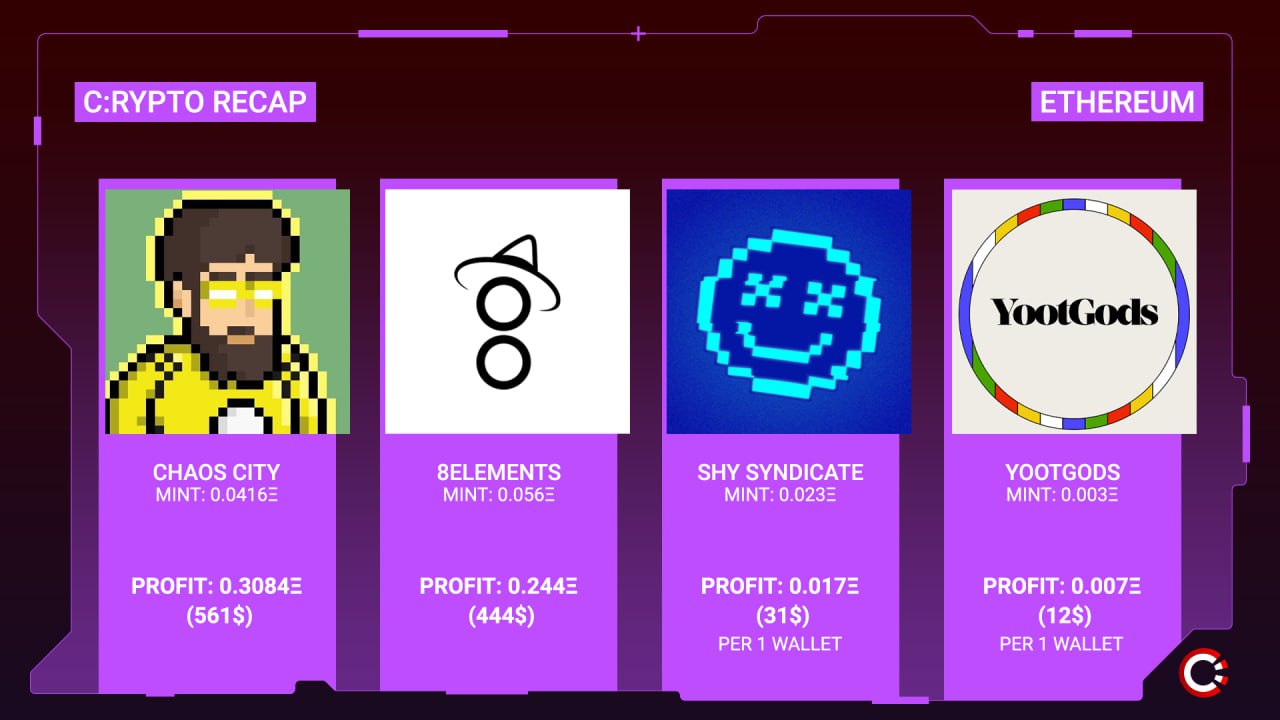 В этот раз приятно покормили не только какие-то серьезные проекты, но и фришки вроде Shy Syndicate и YootGoods. Естественно, такие дропы нет смысла брать по 1 штуке, именно поэтому мы сделали собственного бота на эфир, чтобы каждый мембер мог приумножить свой профит с минимумом усилий.