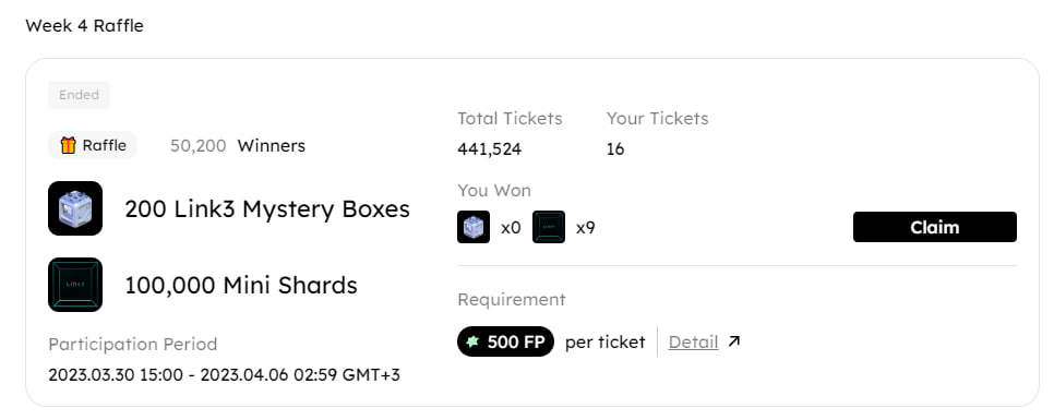Объявили пятую неделю, но урезали количество наград вдвое: теперь 100 боксов и 50,000 шардов вместо 200 и 100,000 соответственно.